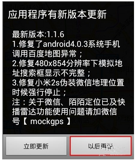 上步骤设置好后,软件会提示更新版本,一定要点击“以后再说”。