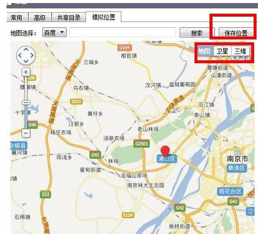点击进去之后,就是个地图,我们可以任意设置自己想要定位的城市,定位好之后,可以点击最上方的保存位置按钮。