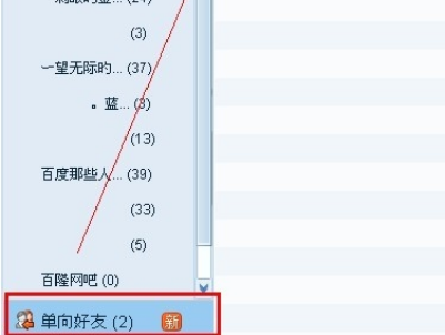 5、完成上一步之后,找到如图所示的单向好友,就可以看见删除的好友,如果自己刚删除的好友还在列表里的话,证明你还存在对方的QQ列表里。