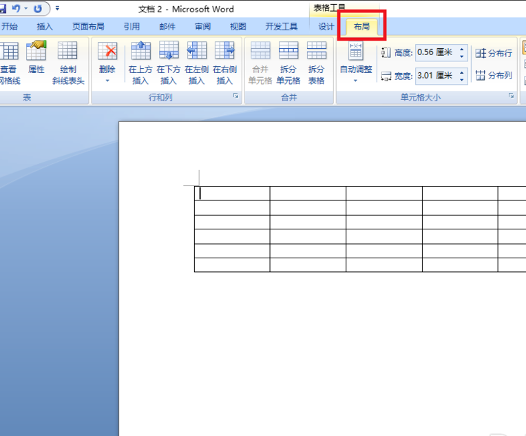 2、选中表格,点击上方的布局——》调整相应的高度与宽度适合自己需要。