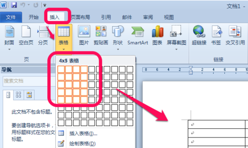 1、打开Word2010,点击word上方导航选项卡的插入——》表格——》选择需要的表格。