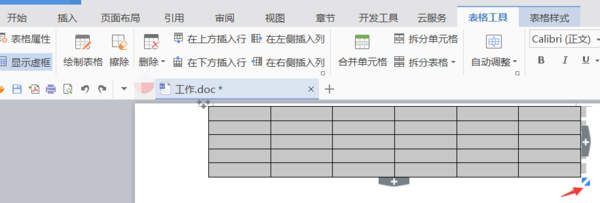 将光标放置在插入的表格的右下方的方向箭头上,拖动表格调整自己合适的大小,如下图;