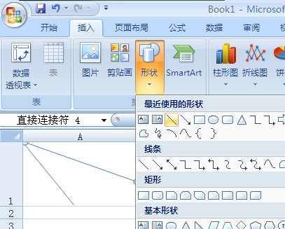 菜单--插入--形状--直线。