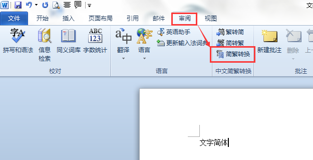 Word中的简繁转换在“审阅”菜单里,如图(Word 2010版本):