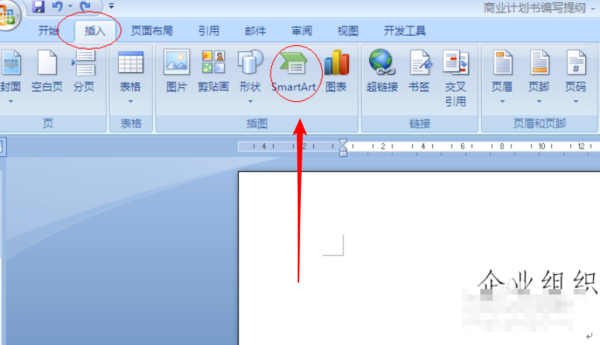 1、选择“插入”选项卡,在“插图”选项组中单击“SmartArt”按钮。