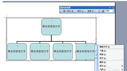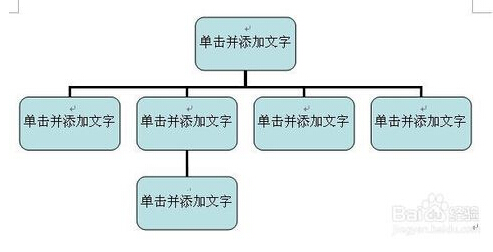 5.如图所示,已经添加了一个图形到选中的图形后面了,选择图形文本框,在其中输入文字内容,完成文字内容的输入后组织结构图就制作完成了。