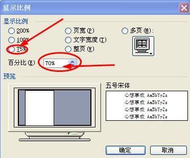 点击“视图”→“显示比例”,在出现的对话框中,选择75%,或者自定义更小的显示比例:
