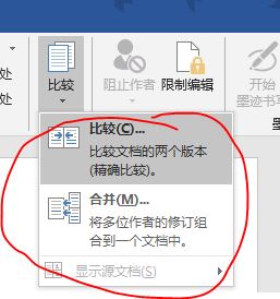 在“审阅”中有一个按钮是“比较”,点黑色的小三角 ,然后你会发现有两个选项,点击上面那个“比较两个文档”,