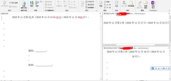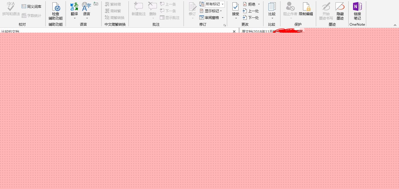 弹出对话框,选择需要比较的两个文档,然后两个文档的不同之处会变色显示,