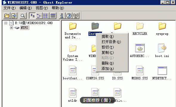 1、对于.gho后缀的镜像,是有ghost软件备份的系统镜像,一般可以使用ghost explorer进行修改。利用他可以非常简单的对 GHOST 映像文件进行编辑,可以按自己的意愿向映像文件里添加、删除文件,也可以将需要的文件提取出来。如下图所示: