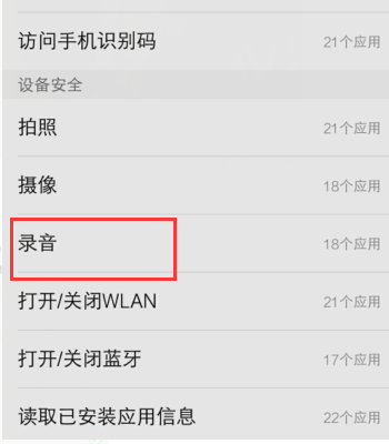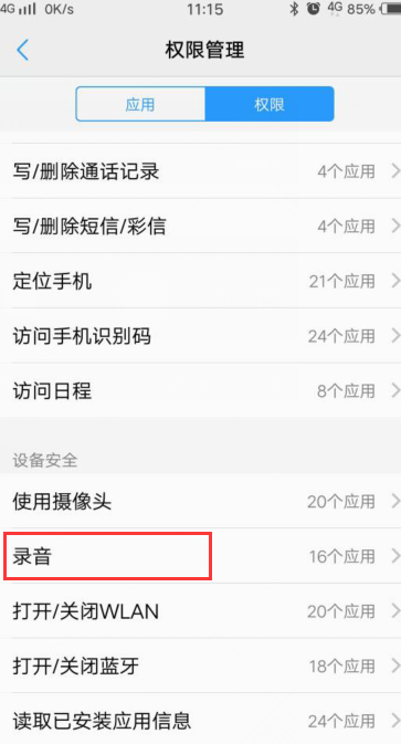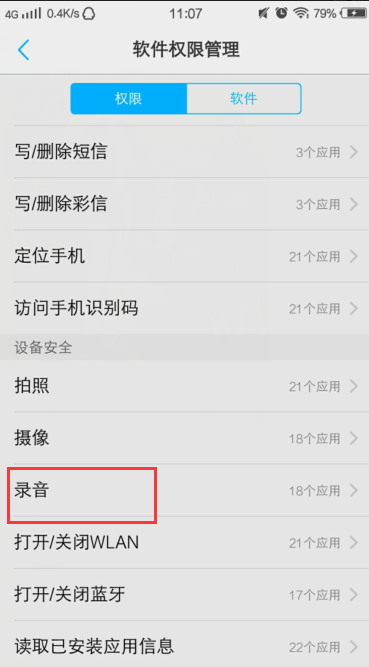4、进入软件权限管理找到录音