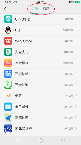 3、ColorOS 2.0版本,安全中心--权限管理--应用权限管理;