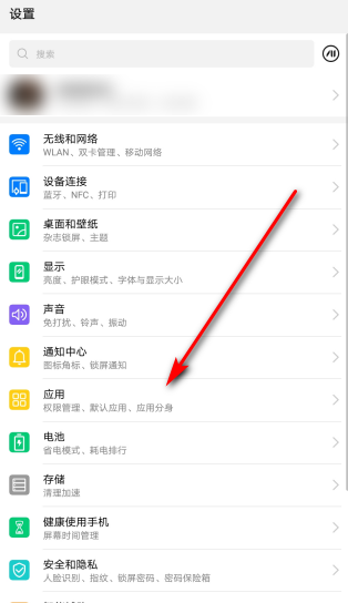 2、接下来在设置界面选择“应用”选项;