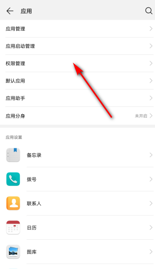 3、接下来在应用界面选择“权限管理”选项;