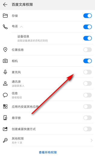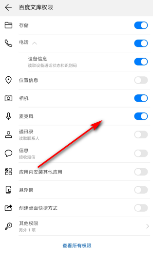 5、在应用权限界面可以看到默认关闭麦克风权限;