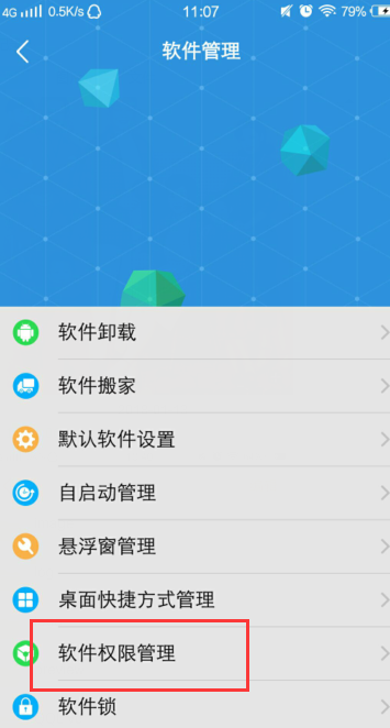 3.进入后,找到软件权限管理,点击此选项。
