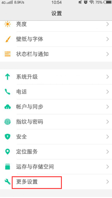 2、进入设置找到更多设置