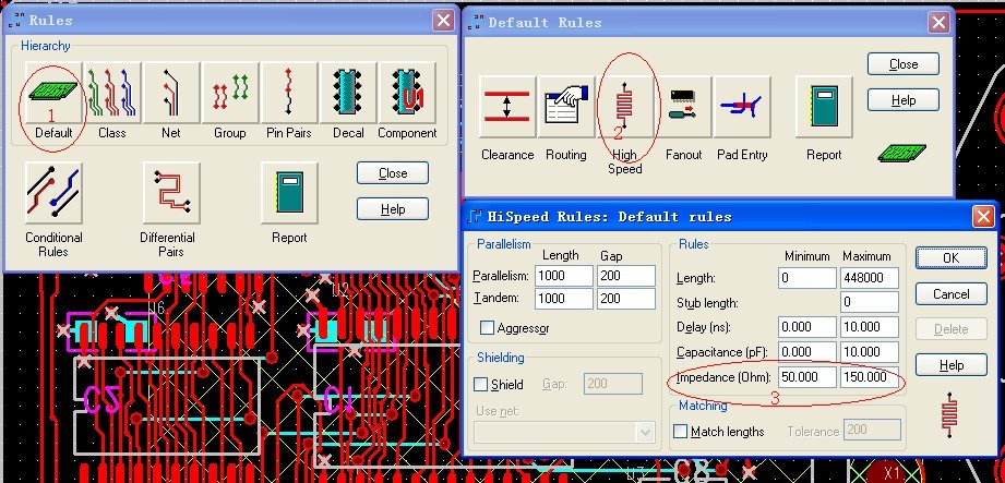 另外在PADSLayout中也可以算,先在层里面设置好板厚、介电常数和铜厚,然后在高速设置中设置其他参数即可算出阻抗,如下图。