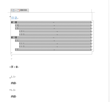 7、完成上述所有操作后,自动生成目录的工作就算完成了,生成目录的效果让我们一起看下图。自动生成的目录还有一个优点就是:当文档内容或顺序变化后,我们点击目录上方的“更新目录”即可重新匹配。