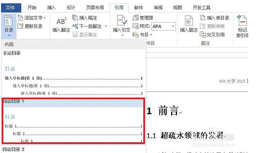 如果你的文档里面已经正确设置了各个标题的大纲级别,点击引用,目录,随便选一个就好了。