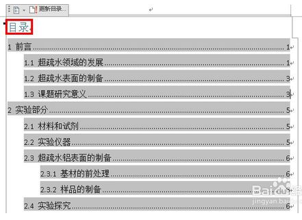 6.最后成功如图,目录在编辑题目文本页码(需要插入的页码而不是手打的)后可以点击更新目录。