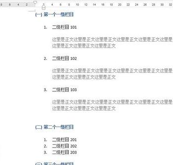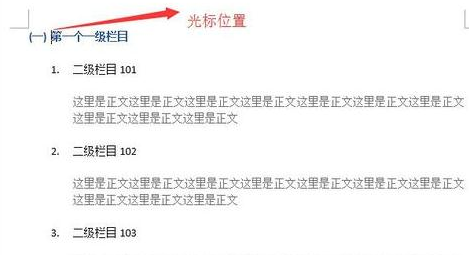 2、如上图,写了3个一级栏目,并且分好了哪是标题哪是正文。现在开始制作word2013的目录。首先要在当前页的前面加一个新的页面,来放目录。把光标放在文字的最前面。