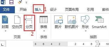 3、然后点击工具栏中的【插入】,再点击【分页】。