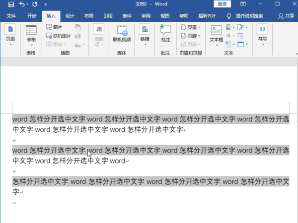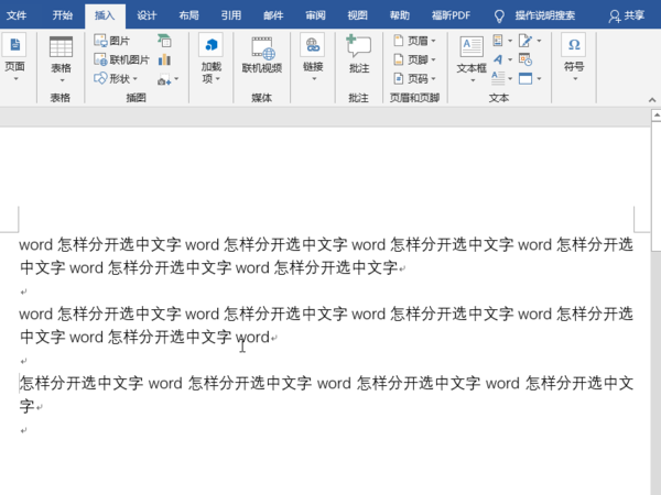 2、打开word文档,输入用于演示在word中怎样分开选中文字的操作所需要的文字。