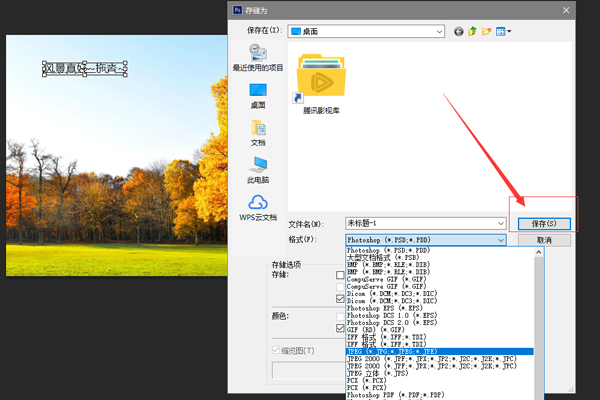 6、在弹出的保存对话框中,输入要保存的名字,单击保存类型下拉菜单,选择JPEG格式,点击保存即可。