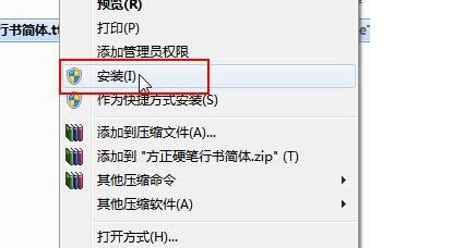 1、win7系统安装字体,解压好下载好的字体压缩包(一般都是压缩好的),得到的TTF文件。