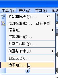 1、打开WORD,在”工具“菜单下选择”选项“命令;