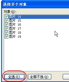 6、使用“选中多个对象”,将所有插入的图片全部选中;