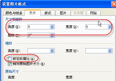把锁定纵横比和相对图片原始大小两个对勾都去掉,然后就可以自由设置图片大小了,因为插入的图片不一样大小,所以不能让他锁定。