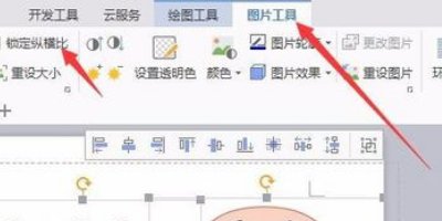 3、选择工具栏中的【图片工具】,下方可以直接输入高度和宽度进行大小调整,因为每张比例不同,所以锁定纵横比前面的勾勾要去掉。这里我们高度和宽度都输入10厘米。