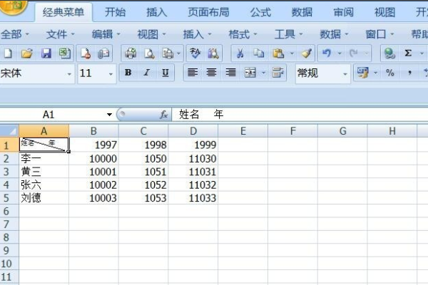 2、使用斜杠区分名称和年份,选择单元格A1。