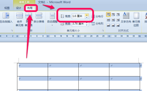 2、选中表格,点击上方的布局——》调整相应的高度与宽度适合需要。