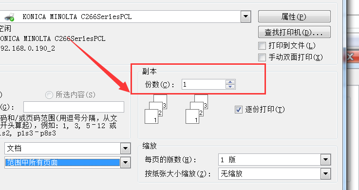 5、返回键设置的打印界面,是设置数字参数,在页面范围内设置4,1,2,3(以4页为例)。这是正确输出小册子的关键因素之一。