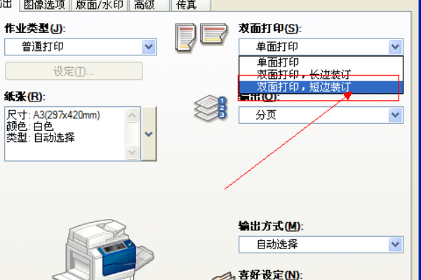 4、在右侧双面打印窗口设置:双面打印,短边装订,然后单击确定。