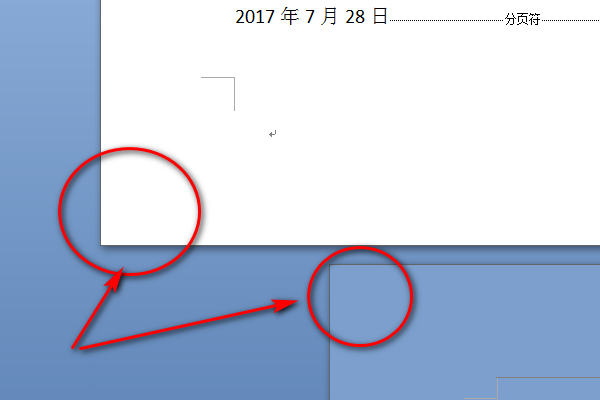 1.首先打开Word2003,即可开始编辑文档,当第一页编辑完成时,鼠标光标会定位在第二页上面(如图1)。