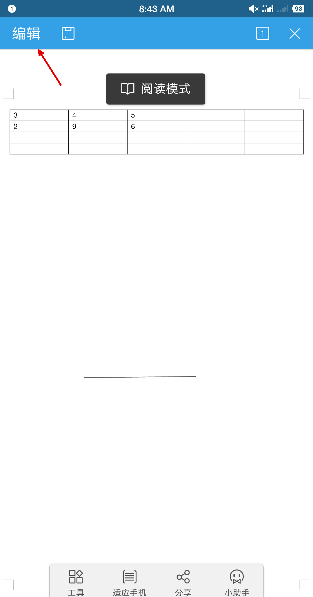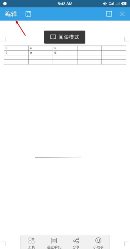 1.在打开的word文档中找到上方编辑选项,点击该选项进入编辑页面,如下图所示。
