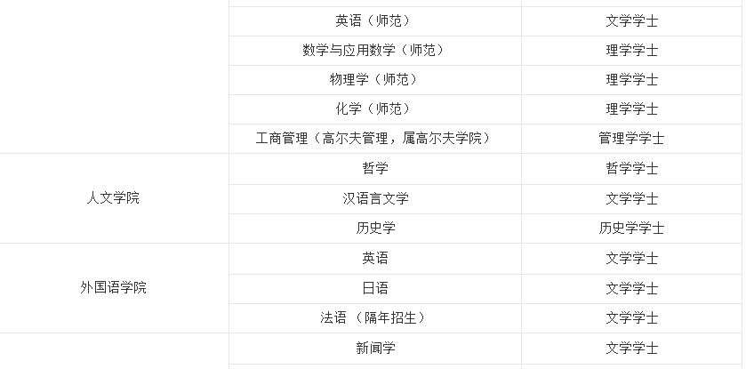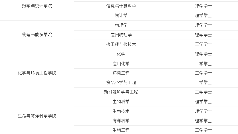 具体专业如下图: