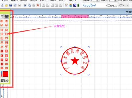 3、界面的左边是印章的模板,点击一个圆形印章,拖动到空白工作区