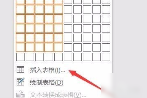 2、单击“插入”选项卡,在“插入”选项卡功能区中,单击表格,弹出表格下拉菜单,在表格下拉菜单中,单击“插入表格”以显示“插入表格”对话框。