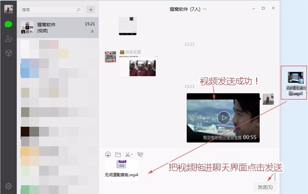 5.登录电脑版的微信,打开好友聊天界面,把视频拖进聊天界面中,点击发送就能发送成功了。