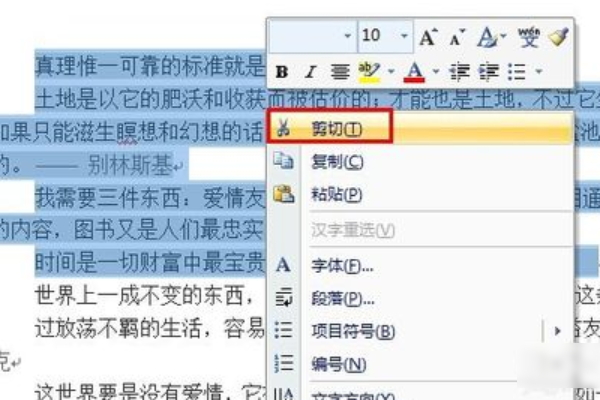 2、然后选中要取消百度阴影的文字 ,右击选择选项卡中的“剪贴”按钮。