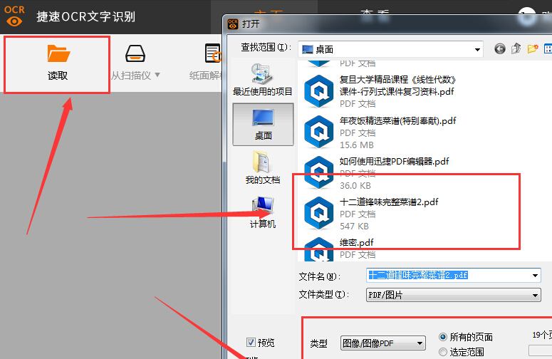 1、打开软件,点击左上角的“读取”,打开需要识别的文件。此时我们可以在下面预览区查看文件,