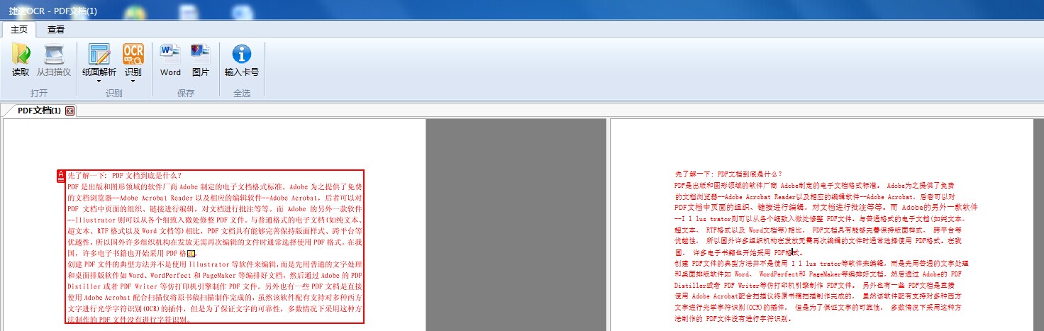 该方法适用于大多数PDF文档,原理同样是利用OCR识别技术,前边处理和方法2差不多,目的是将PDF转换为图片格式,后期利用专业OCR软件识别。用Adobe acrobat打开pdf文档,另存为JPG。然后再用汉王(或者其他ocr软件,如尚书、紫光等)打开JPG ,再点击版面分析-文字识别,插入word,就可随便编辑了。识别的时候同样存在一些错误,要仔细校对。