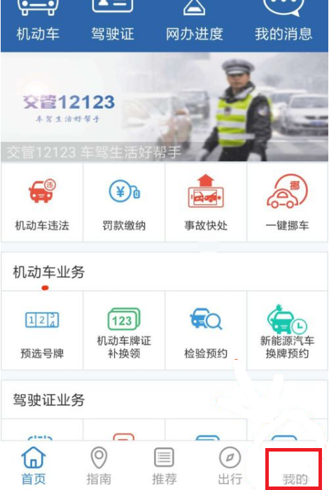 二、进入交管12123后,找到右下角的“我的”一项,点击进入。