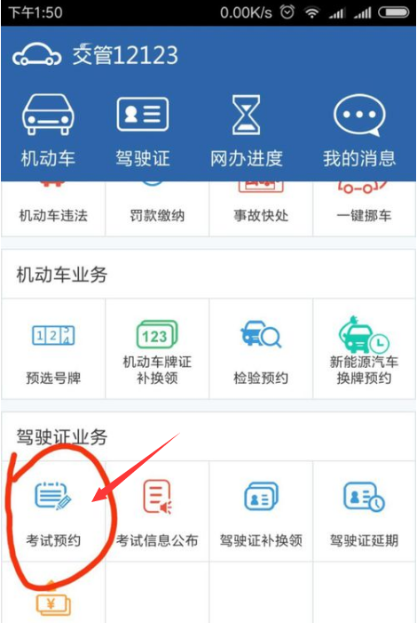 三、进入后找到“考试预约”一项,点击进入。