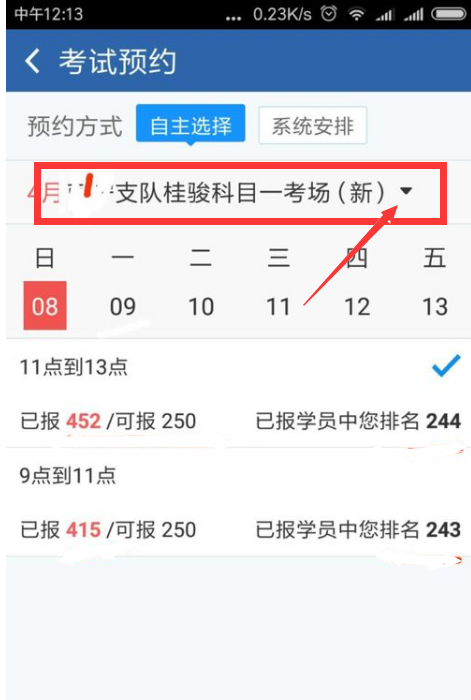 四、进入考试预约后,在下图红框处就可以选择科目及场次预约了。
